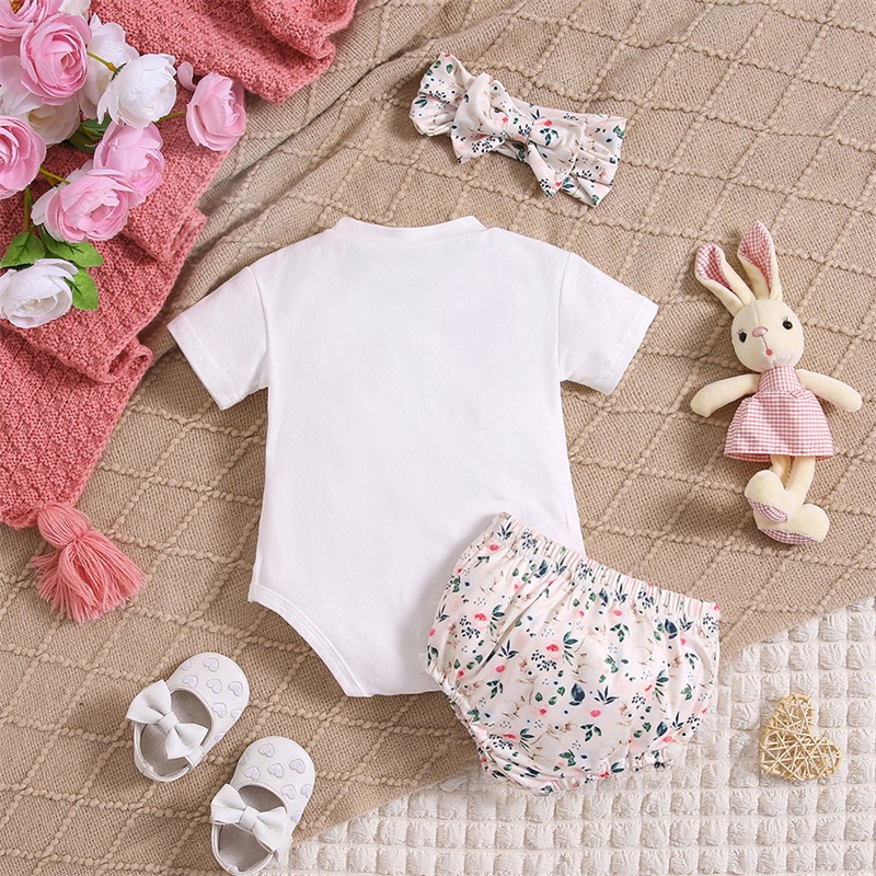 Short Sleeve Letter Bodysuit with Bunny Shorts Set