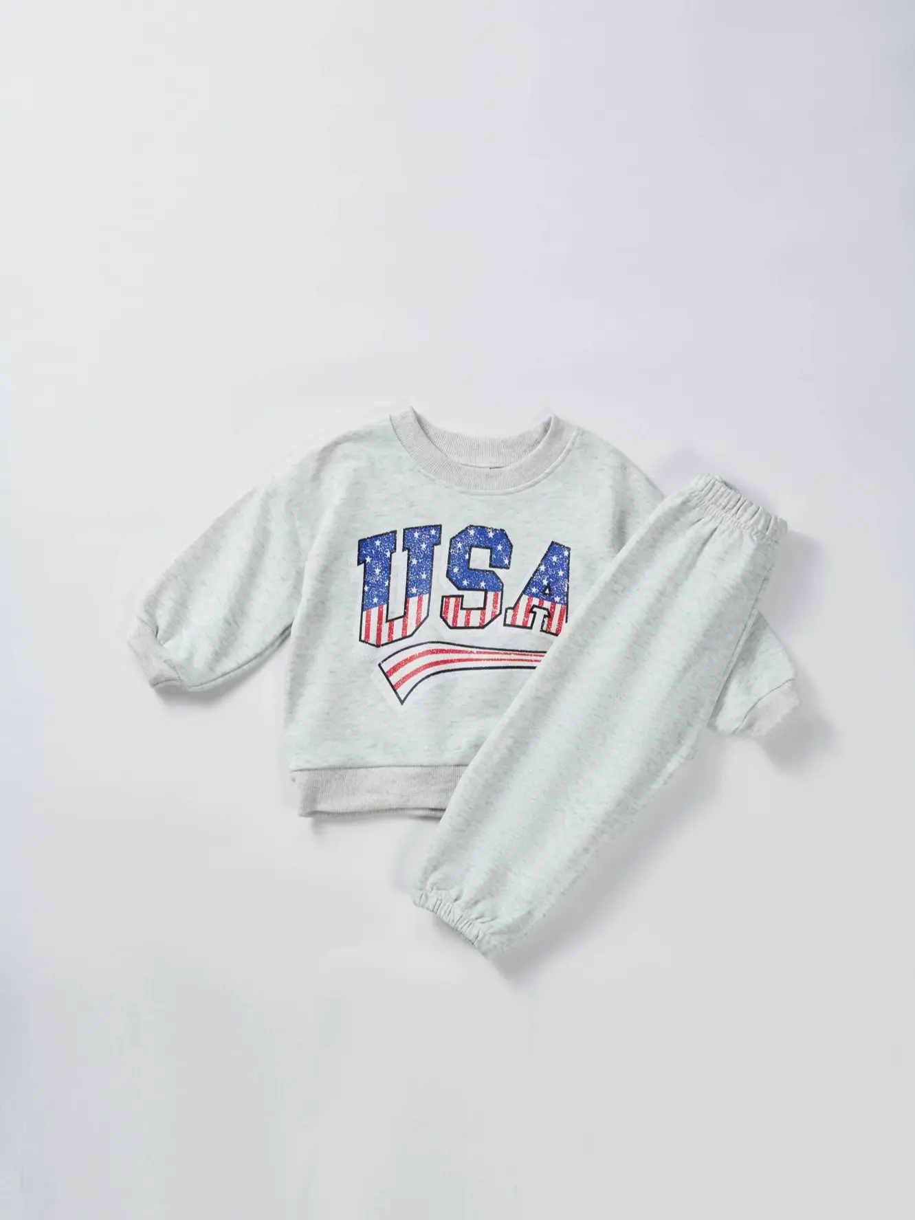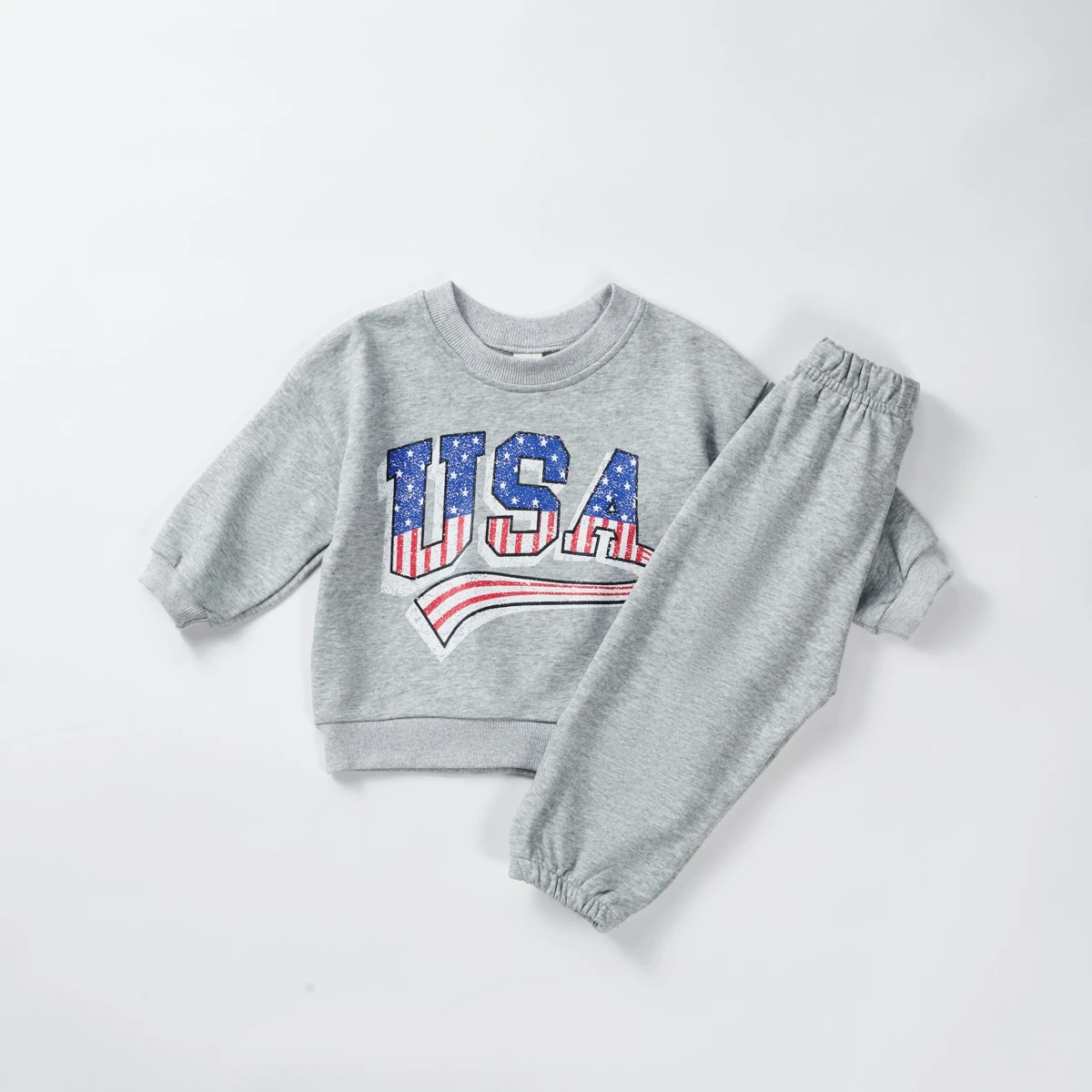 USA Printing Tshirt +shorts Clothes Toddler Clothing Sets
