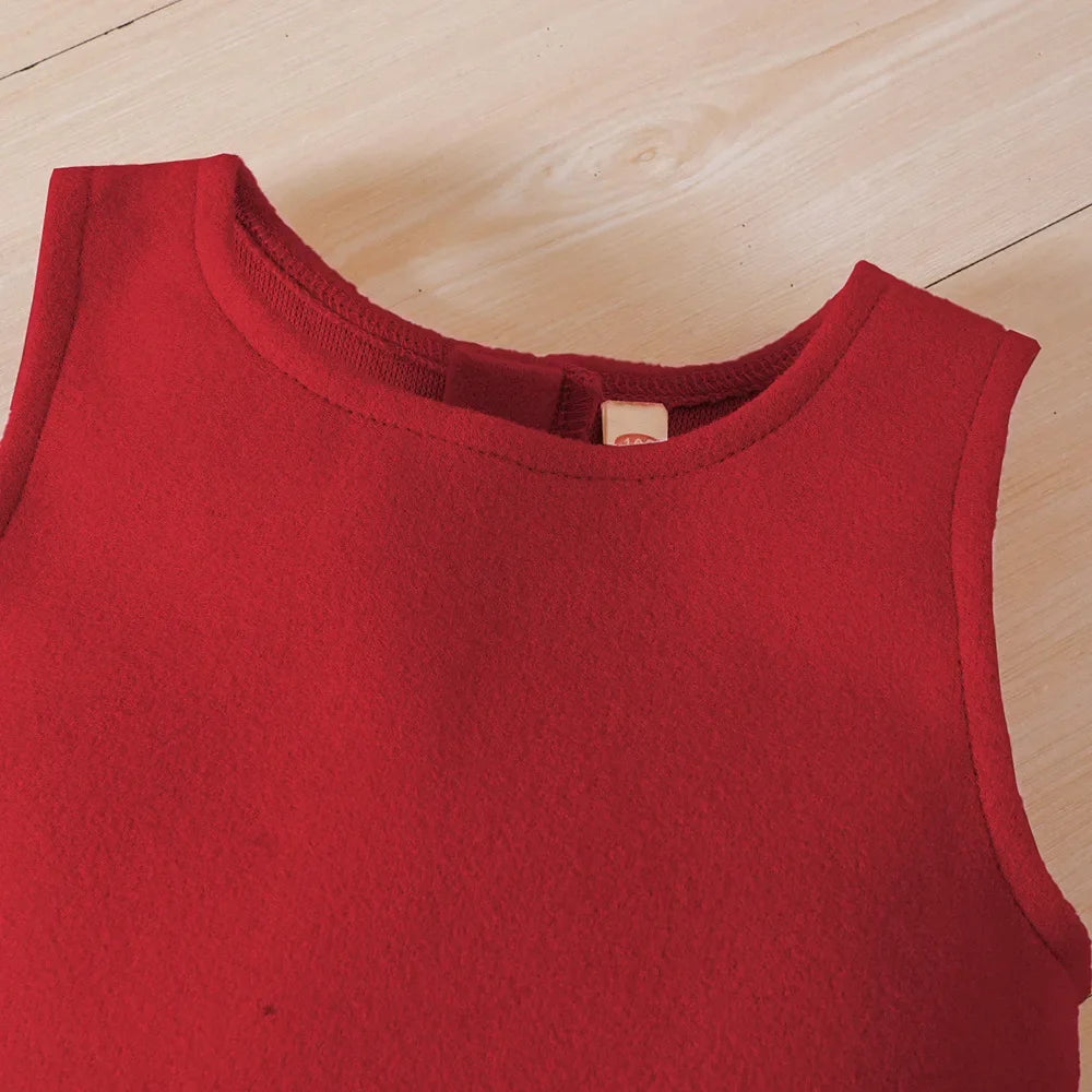 Autumn and winter new children's wear festival red 3-piece winter solid color coat suspenders skirt + hat fashion girls' suit