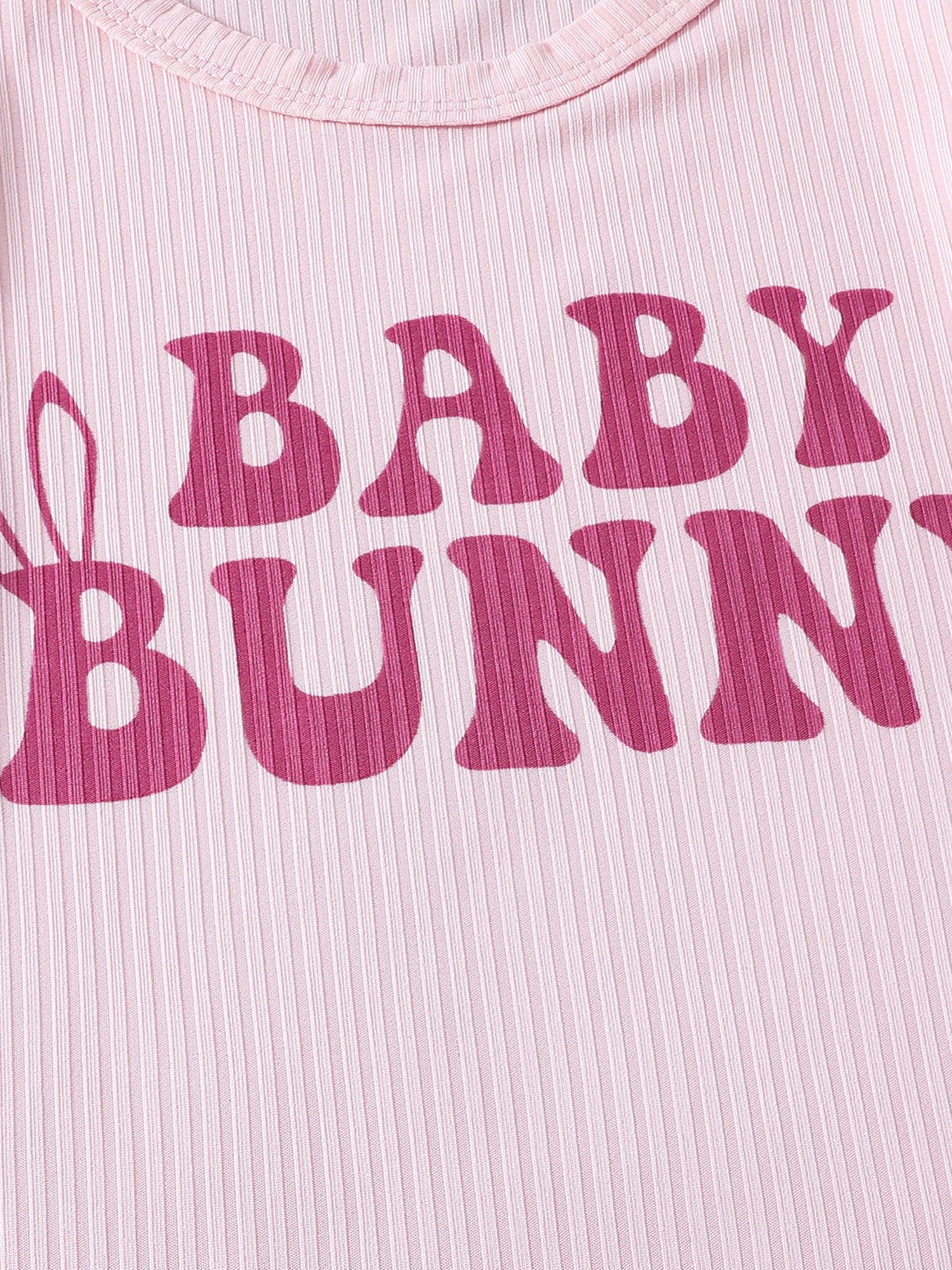 Short Sleeve Letter Print T-Shirt Bunny Floral Flare Pants Set