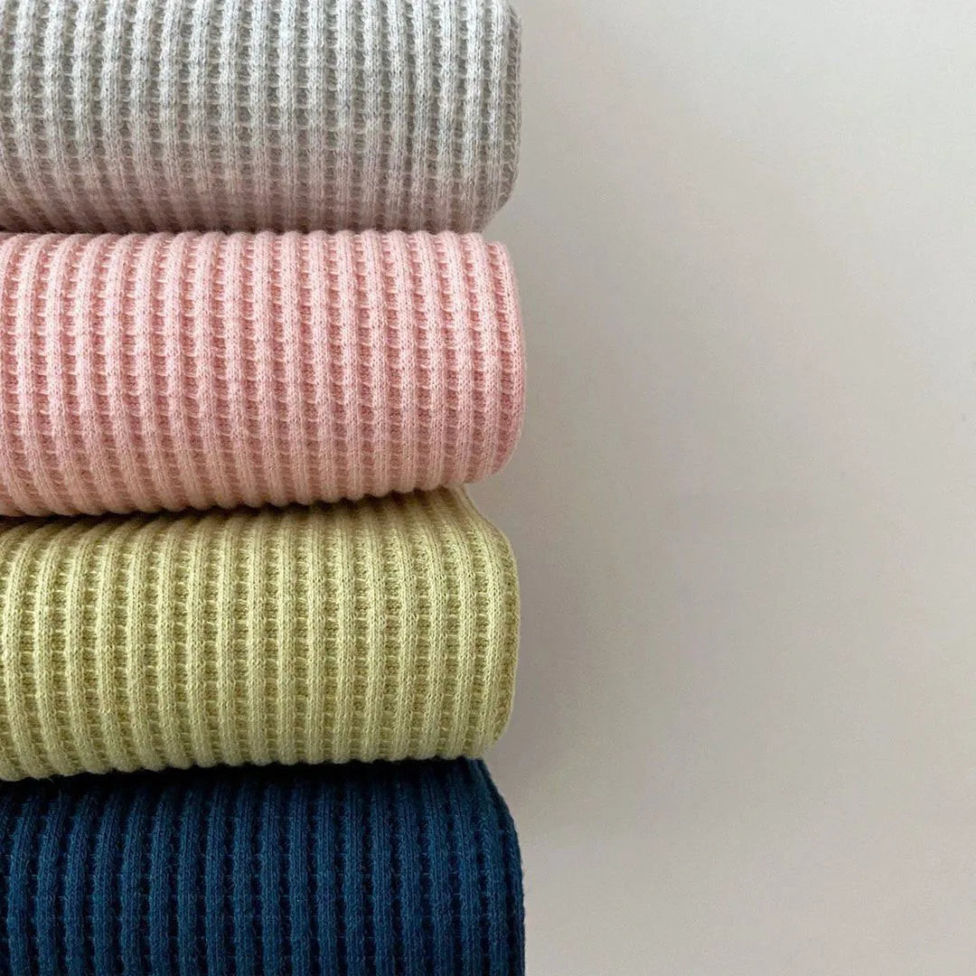 Waffle Cotton Kids Loose Tracksuit Pullovers Tops+Pants 2PCS Set