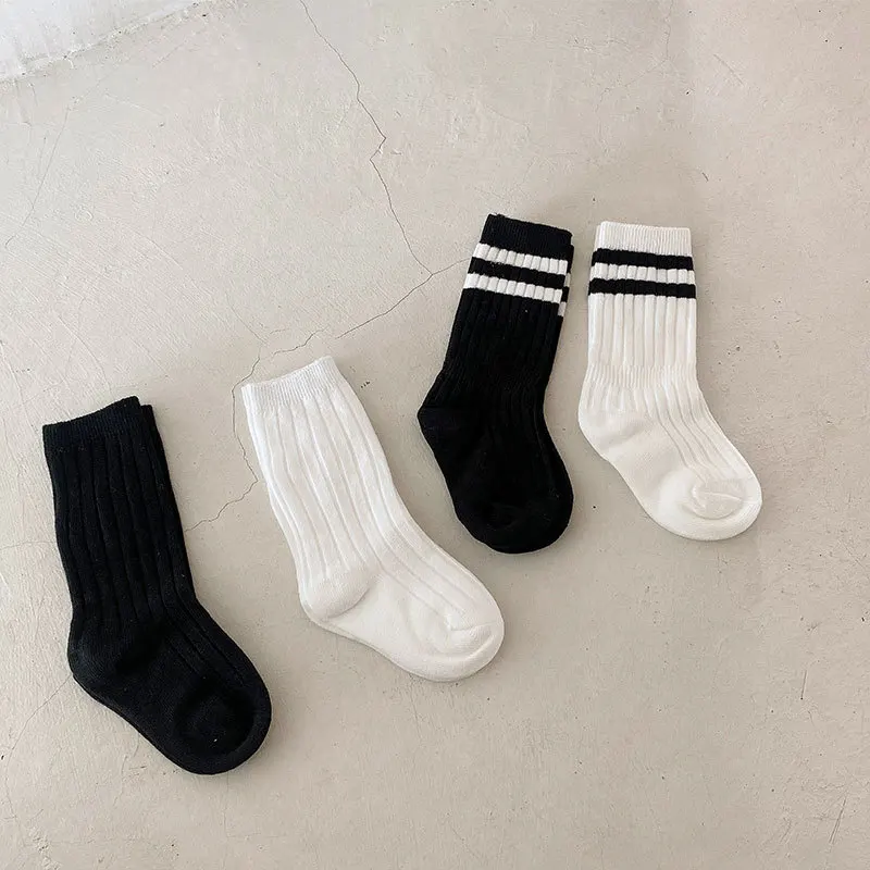 New Kids Cotton Sport School Students Socks Cotton Black White Socks for Boys Girls Slouch Socks Baby Toddler Socks 1-10Y