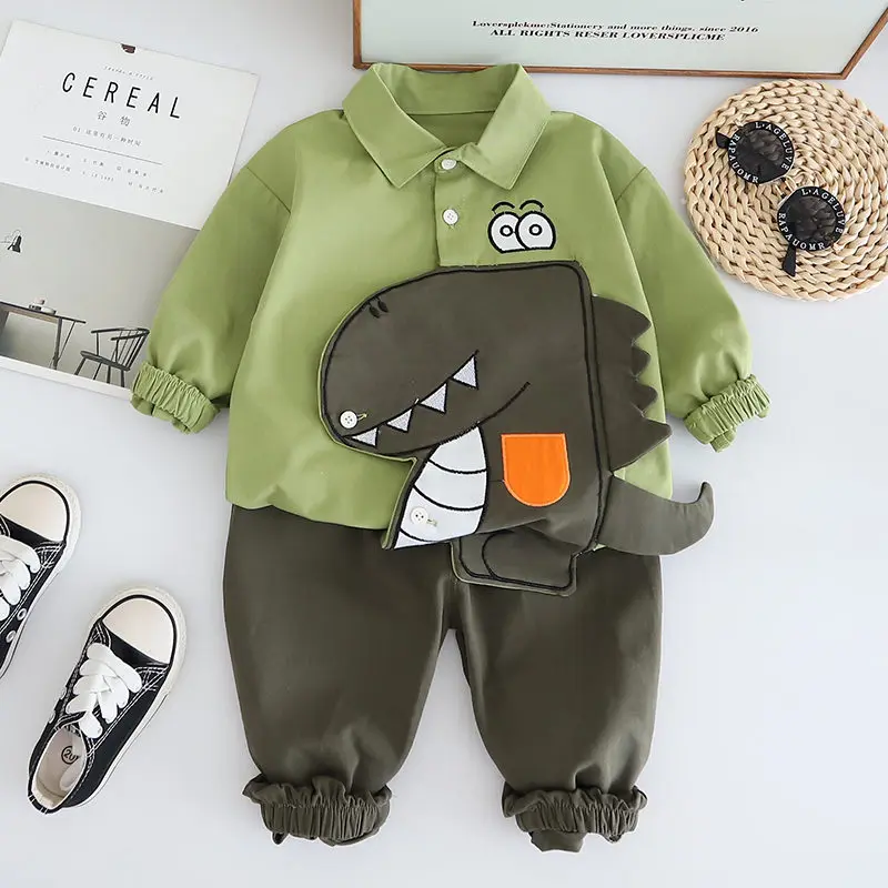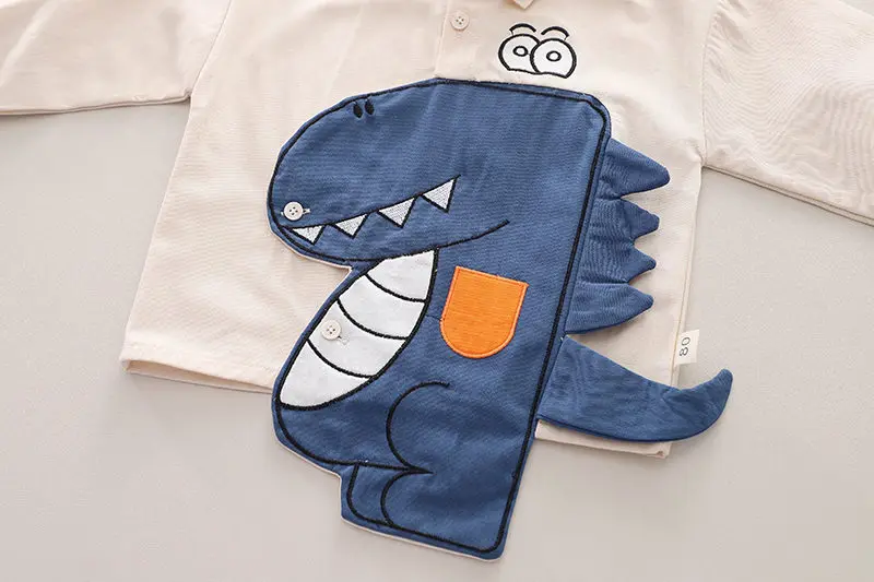 Cotton Sport Patchwork Dinosaur Shirt+ Jeans 2Pcs/Set