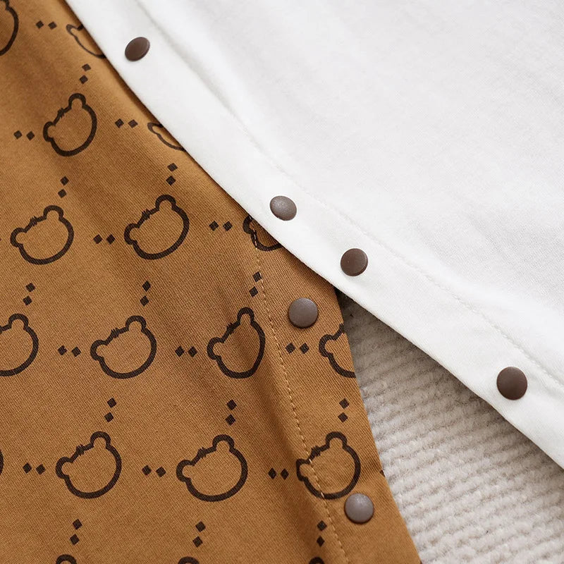 Cartoon Little Bear Printed Cotton Comfortable Casual Long Sleeve Baby Bodysuit