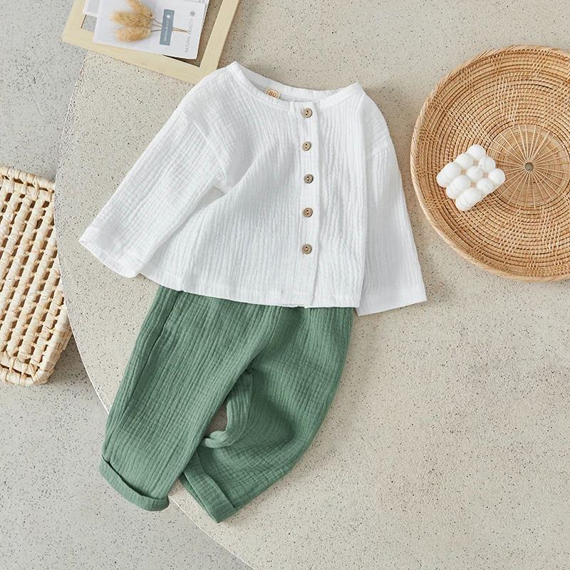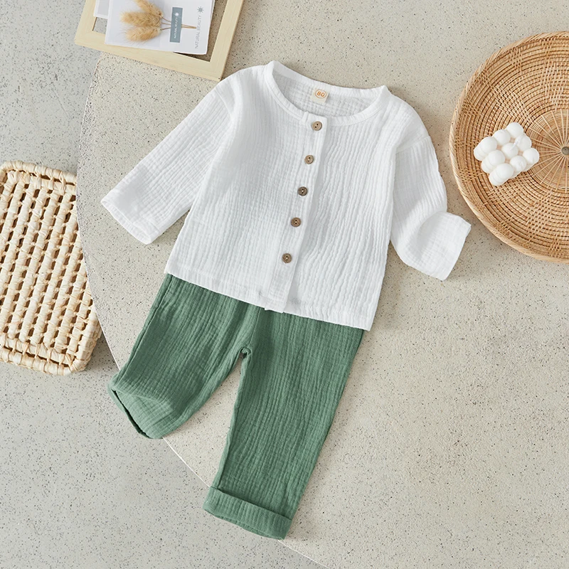 Suefunskry Toddler Boys Spring Fall 2Pcs Outfit Long Sleeve Single-breasted O-Neck Tops and Solid Color Pants Casual Set 6Months