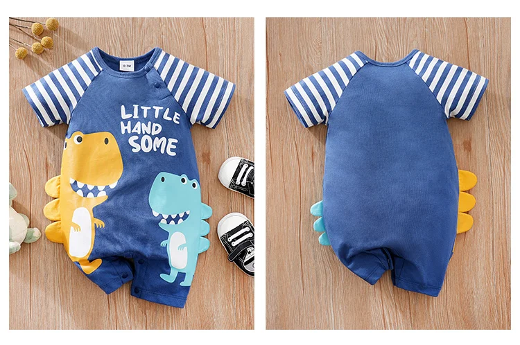 Summer Boys Cute Cartoon Dinosaur 3d Printing Casual Cotton Comfortable Short Sleeve Bodysuit